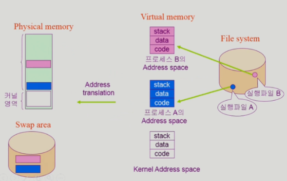 - 사용자 프로그램은 실행시키면 주소 공간이 생겼다 프로그램 종료하면 사라짐