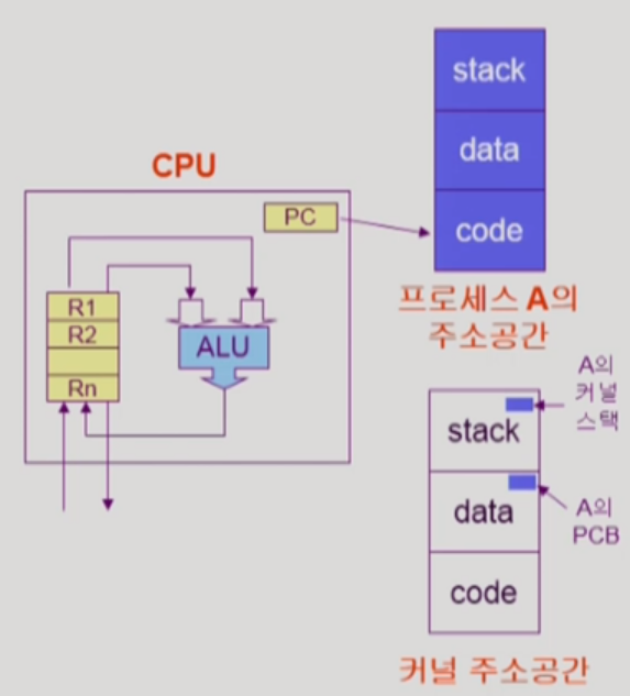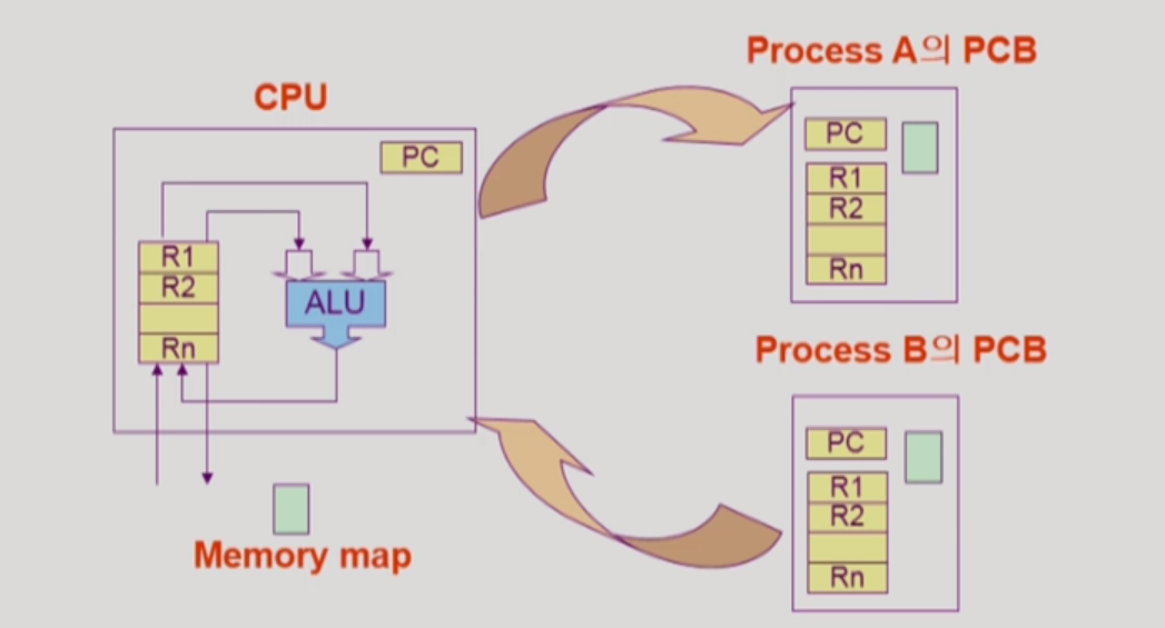 - 각 CPU 수행 단위 마다 현재 레지스터에 어떤 값을 넣고, 프로그램 카운터가 코드 어느 부분을 가리키면서 실행하고 있는 지 별도로 유지